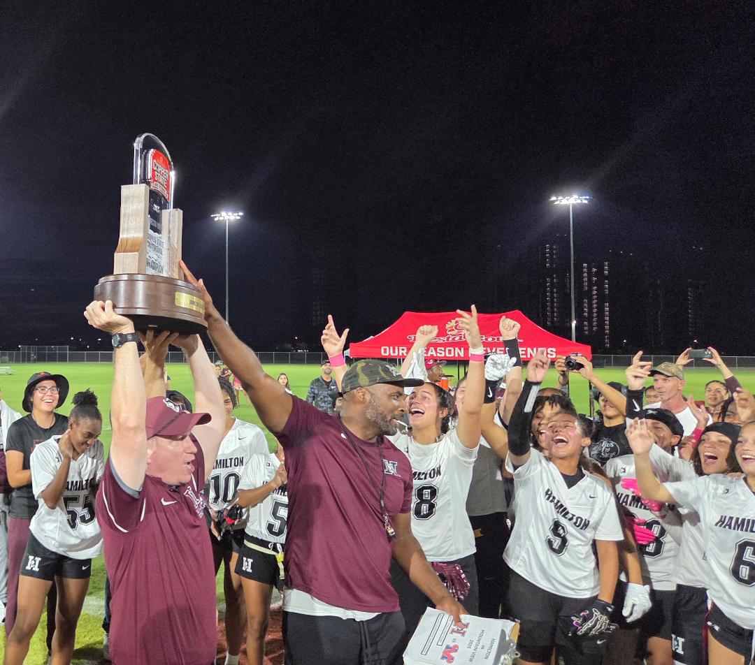 On the ensuing offensive play by Highland, Hamilton senior Samaya Taylor-Jenkins had a pick six to make it 20-0 in the first quarter.