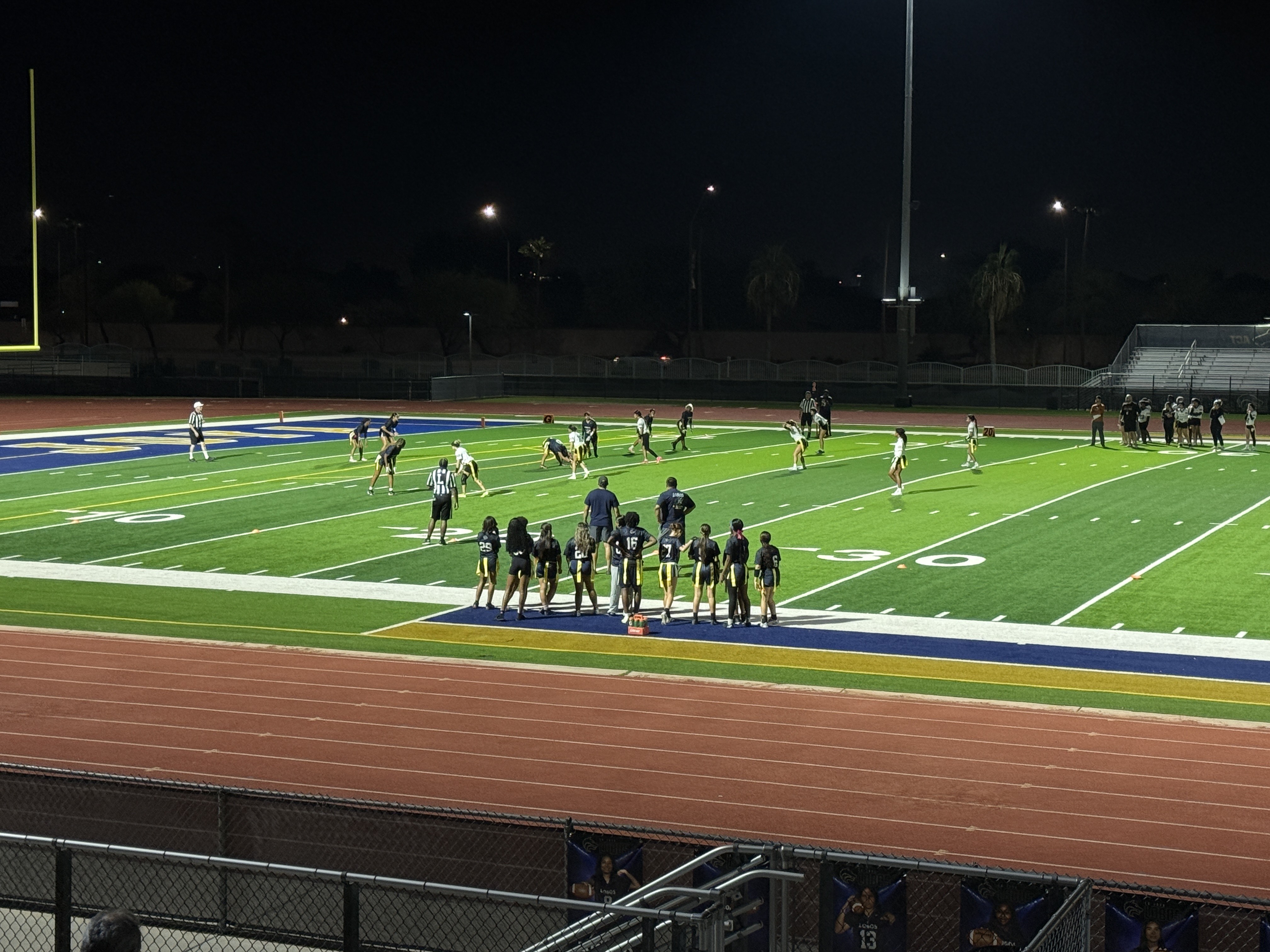 The Scorpions opened the game with a methodical drive, taking nearly 10 minutes off the clock. Facing third down from the Lobos' 11-yard line, quarterback Andrea Garcia found wide receiver Sophia Tanski in the end zone to give her team a 7-0 lead.